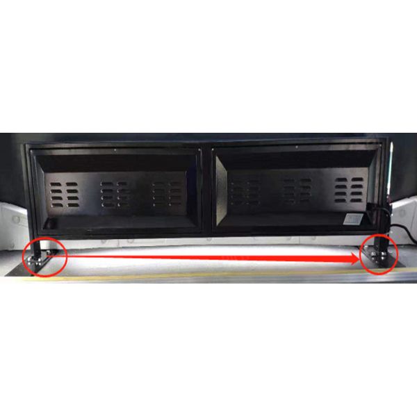2. LED Screen and the rear window should keep the distance of a palm. If the screen is too close to the glass, The screws fixing the screen bracket may become aging and loose. In this situation, vehicle shake may break the window. The screen should be installed in the center of the rear space of the bus.